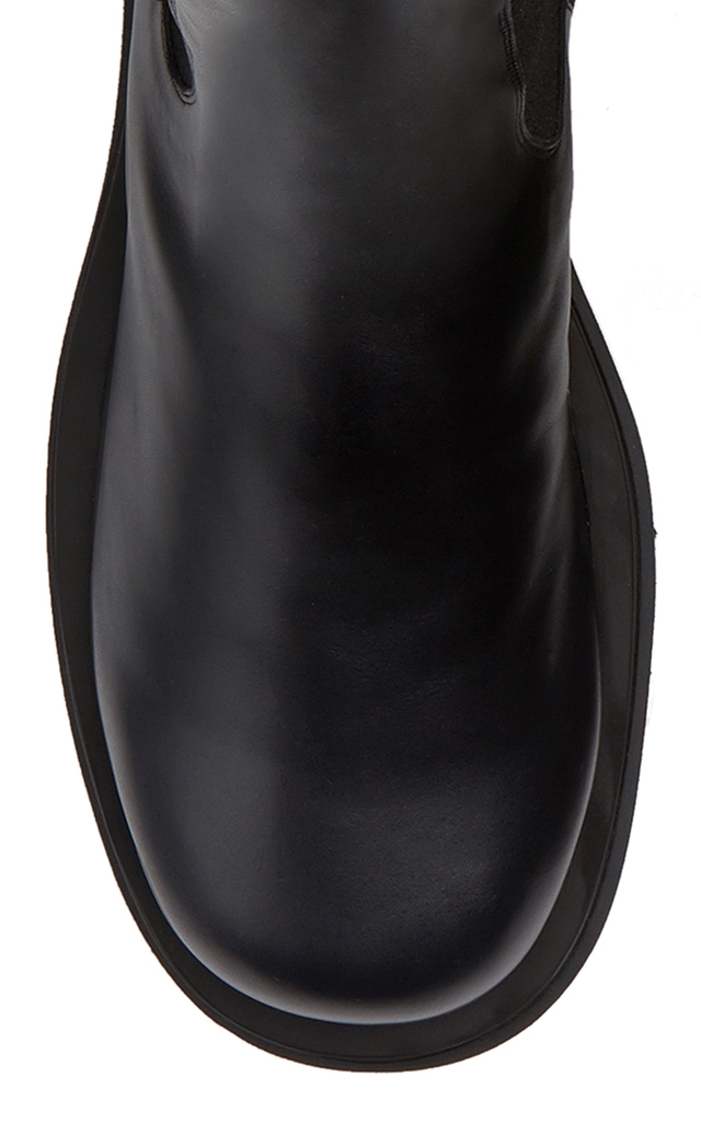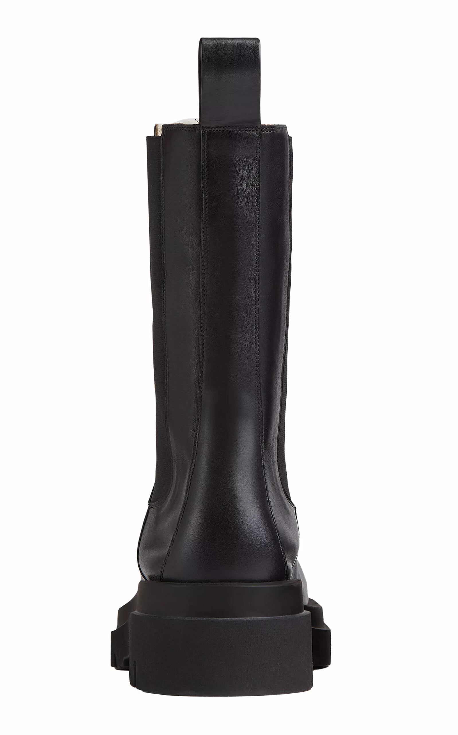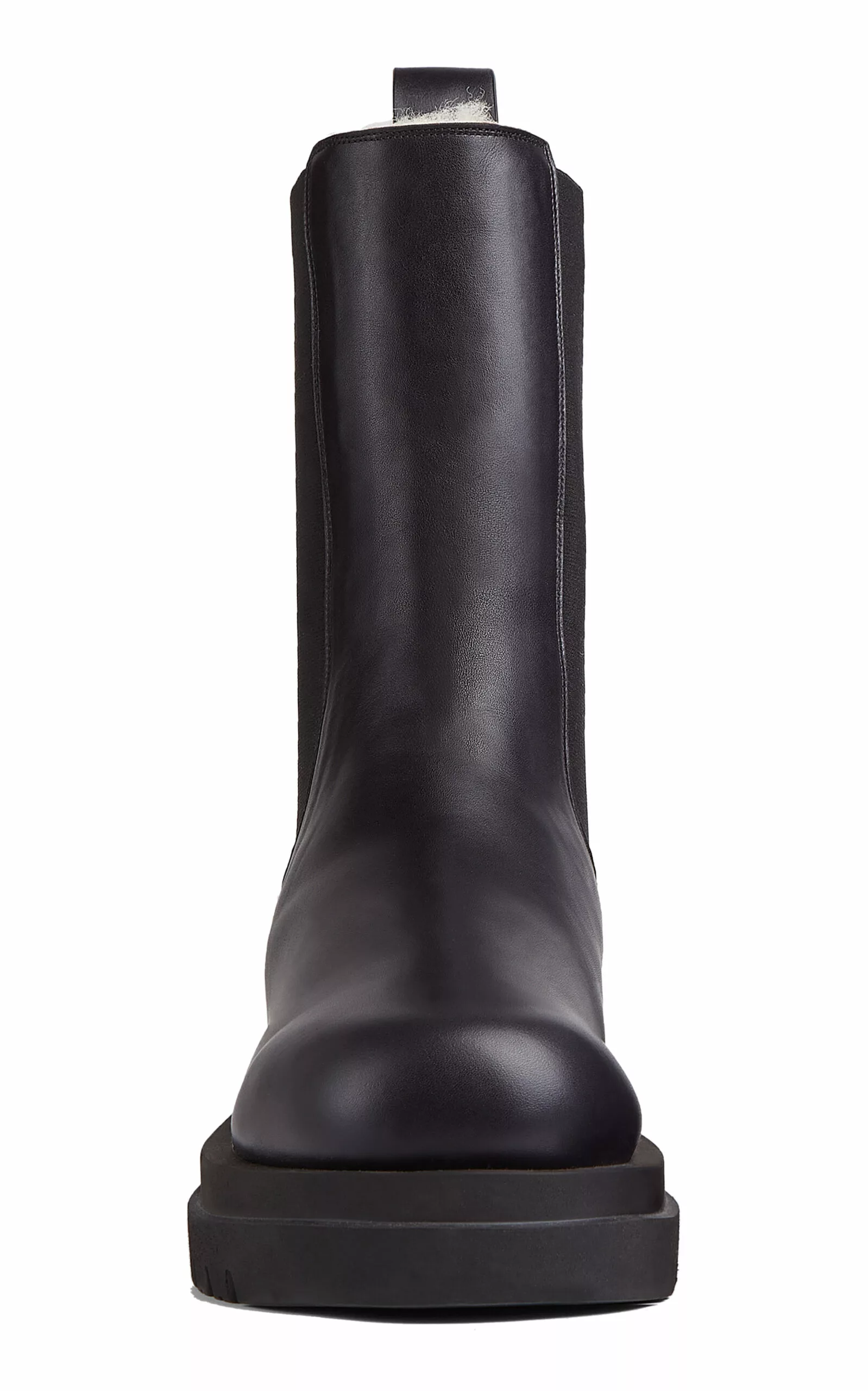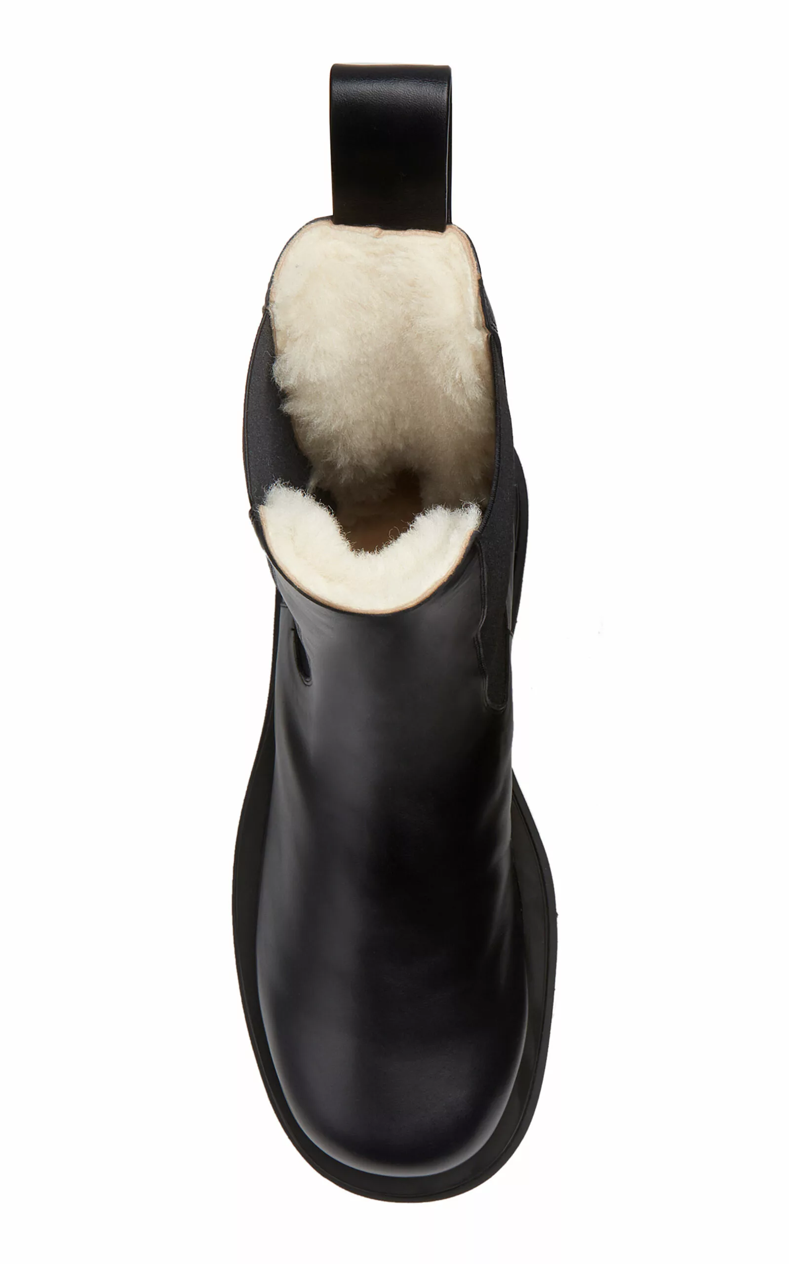 Building on the now-signature stompy boot, this Chelsea pair is crafted from smooth calfskin leather with a warm shearling lining and on-trend chunky rubber lug soles. Pair them with the ‘Pouch’ bag in a matching shade.