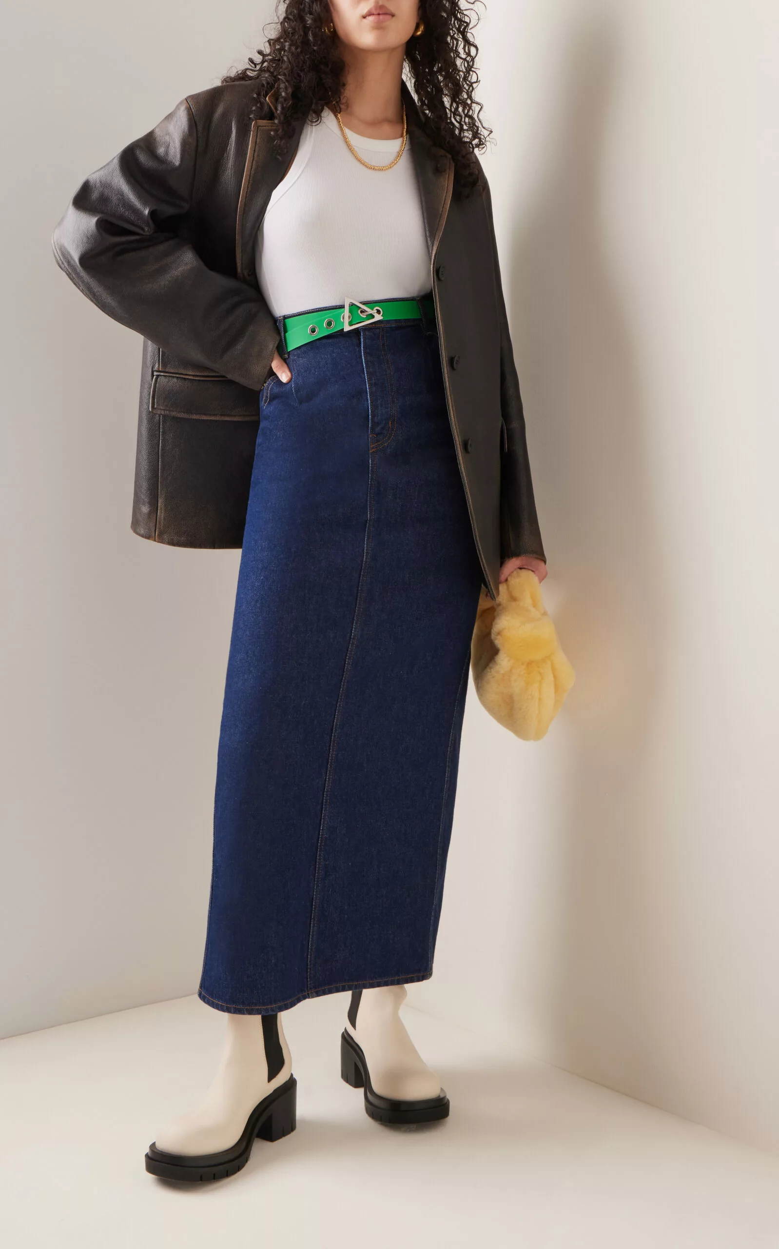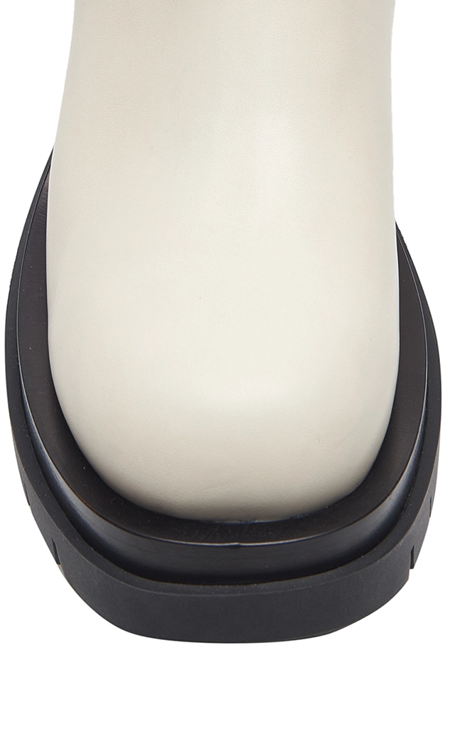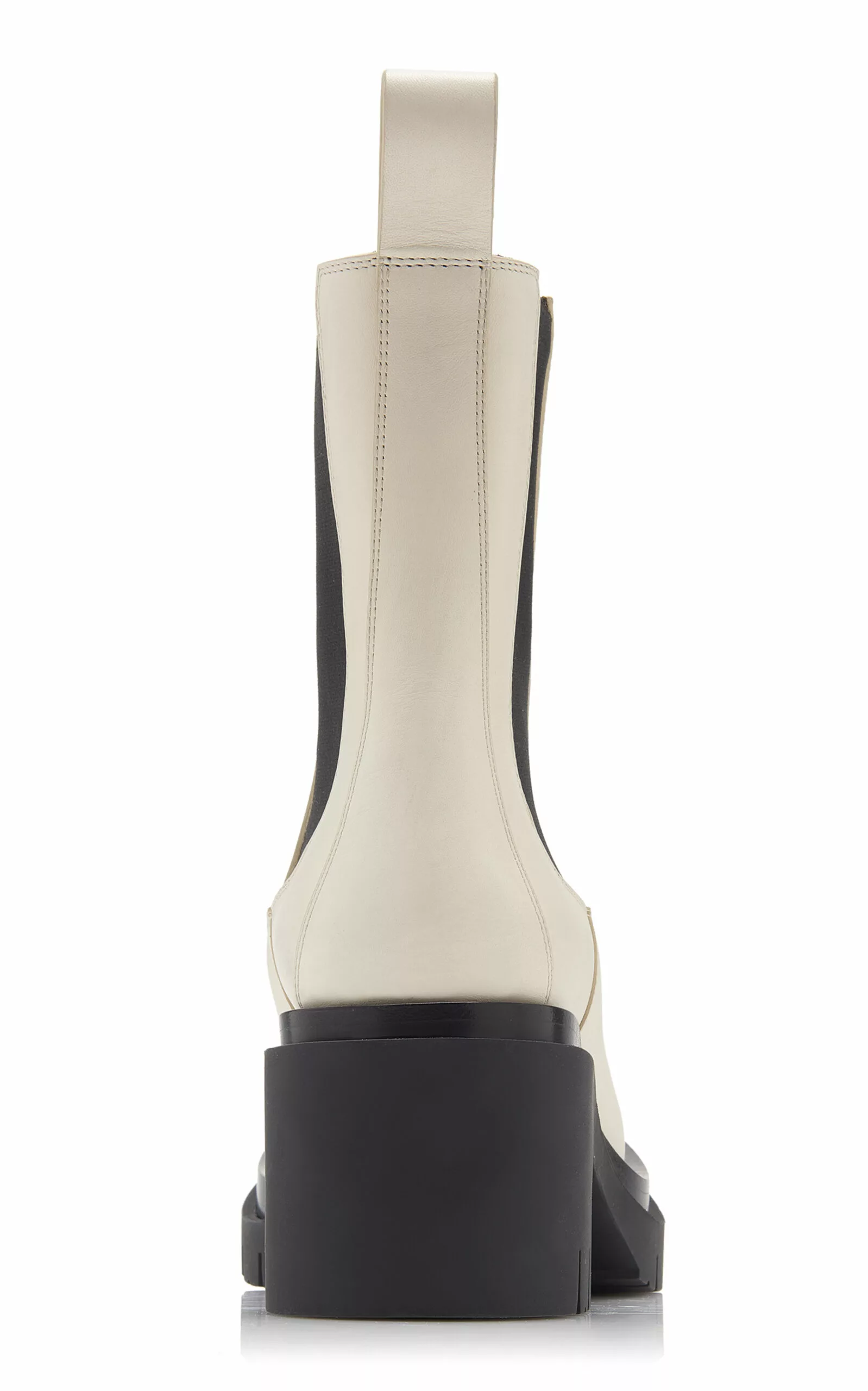 Chunky lug-soled boots have been dominating this season and we have Bottega Veneta to thank for that. This military-inspired iteration has been meticulously crafted in Italy from smooth calfskin leather into a taller Chelsea silhouette with a handy pull tab. Wear them to toughen up pretty midi dresses.