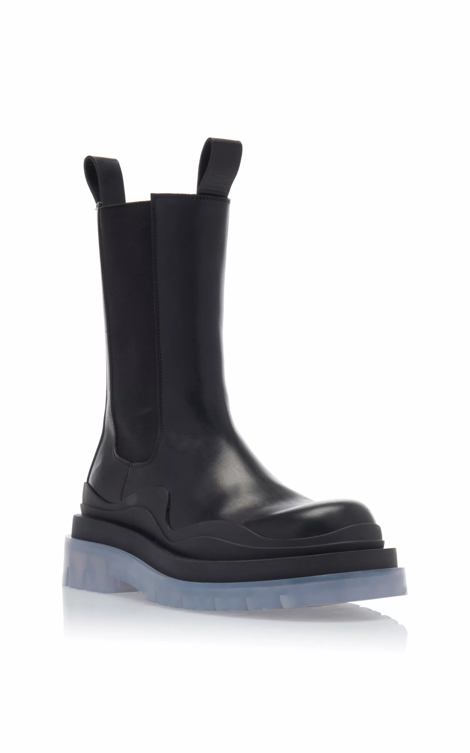 These chunky boots defined a plethora of ensembles on Bottega Veneta’s catwalk––we’re obsessed with how they combined the brand’s traditional craftsmanship with modernized aesthetics. Cast from black and cream leather, they’re designed with exaggerated lug soles and elasticized panels.