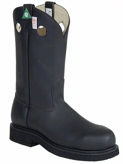 This pull-on Canada West Boot is a blend of rugged work features like a steel toe and Vibram sole, plus Western design and pull holes.