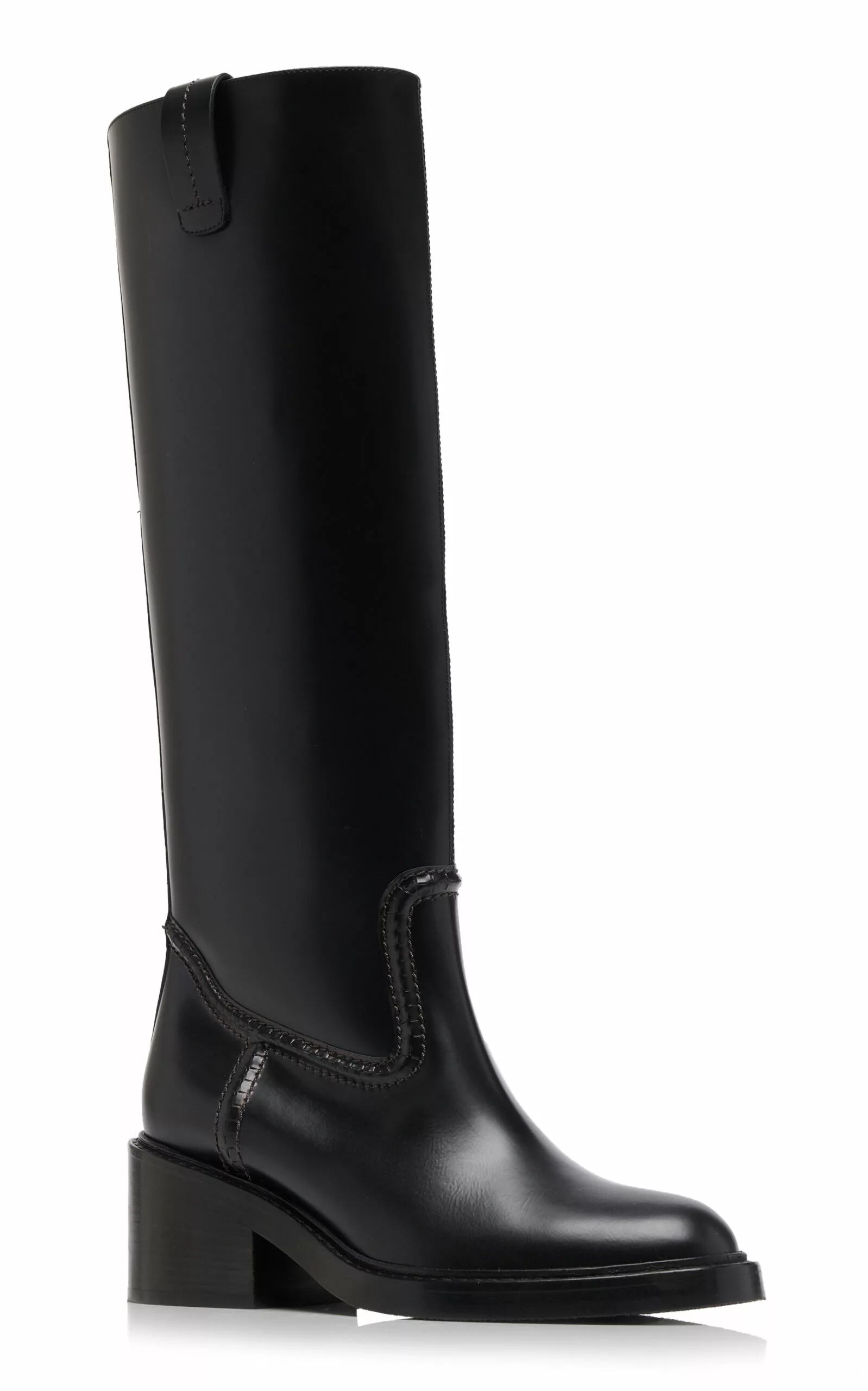The ‘Mallo’ have an equestrian-inspired silhouette made from polished calfskin with a stacked heel and rounded toes. Use the pull tabs to slide on with ease.