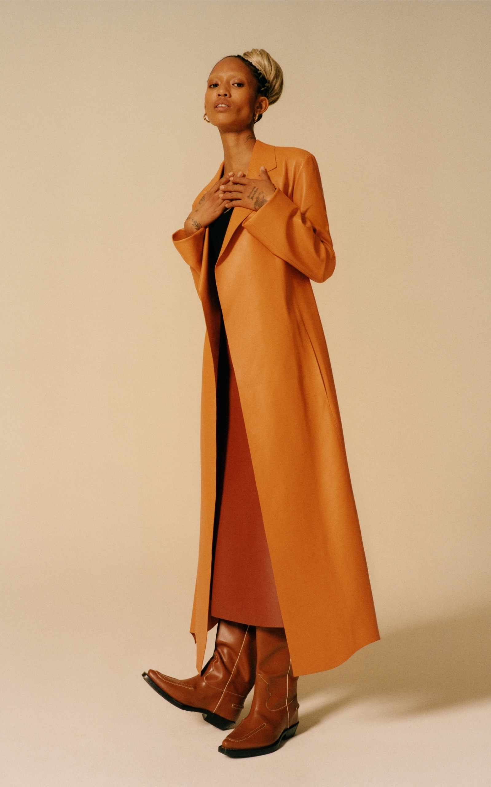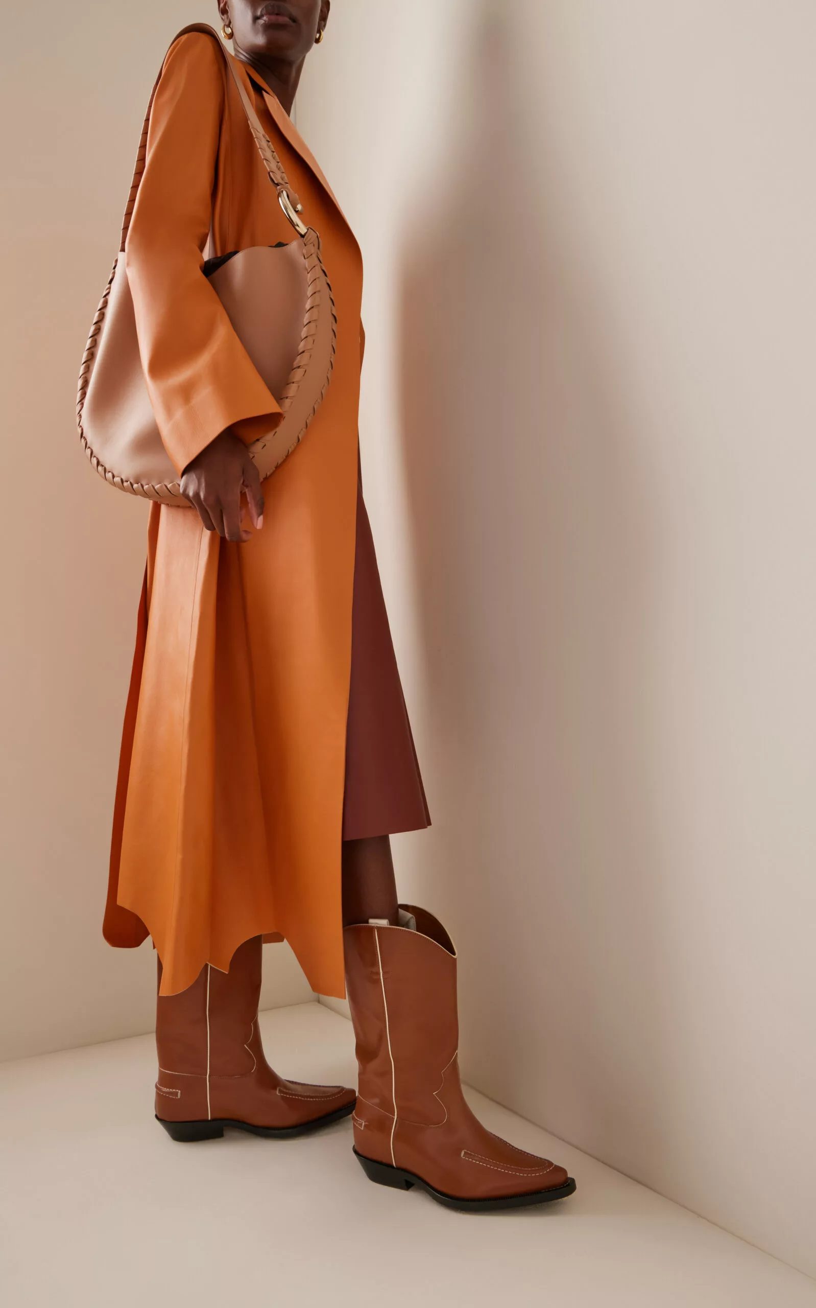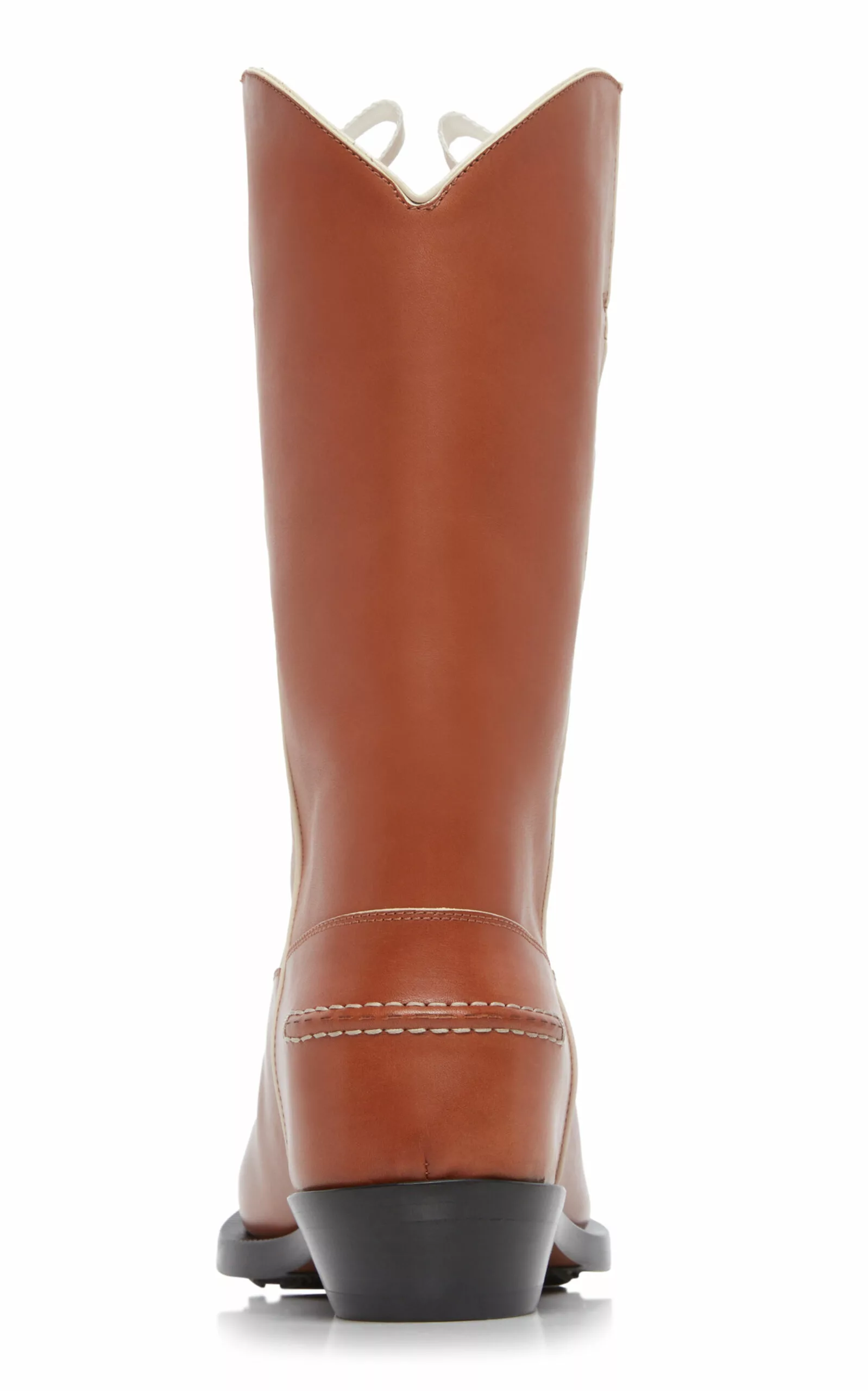 Inspired by Western styles, the ‘Nellie’ calf-length boots are constructed from low-impact leather with whip-stitching around the vamp and heel — a house signature. Use the interior pull tabs to slip on with ease.