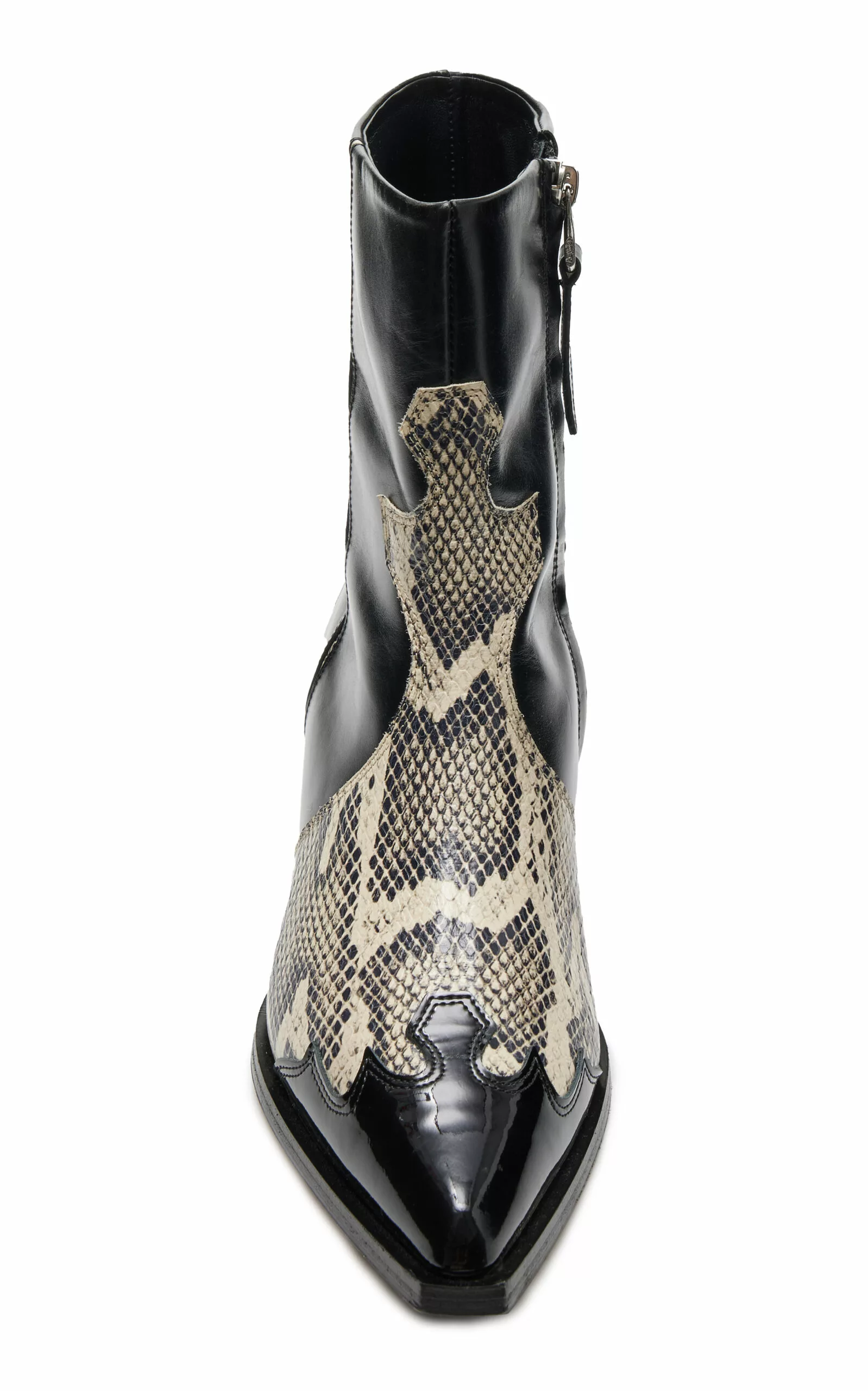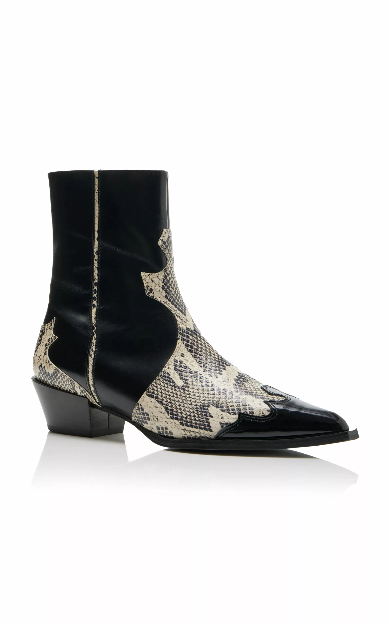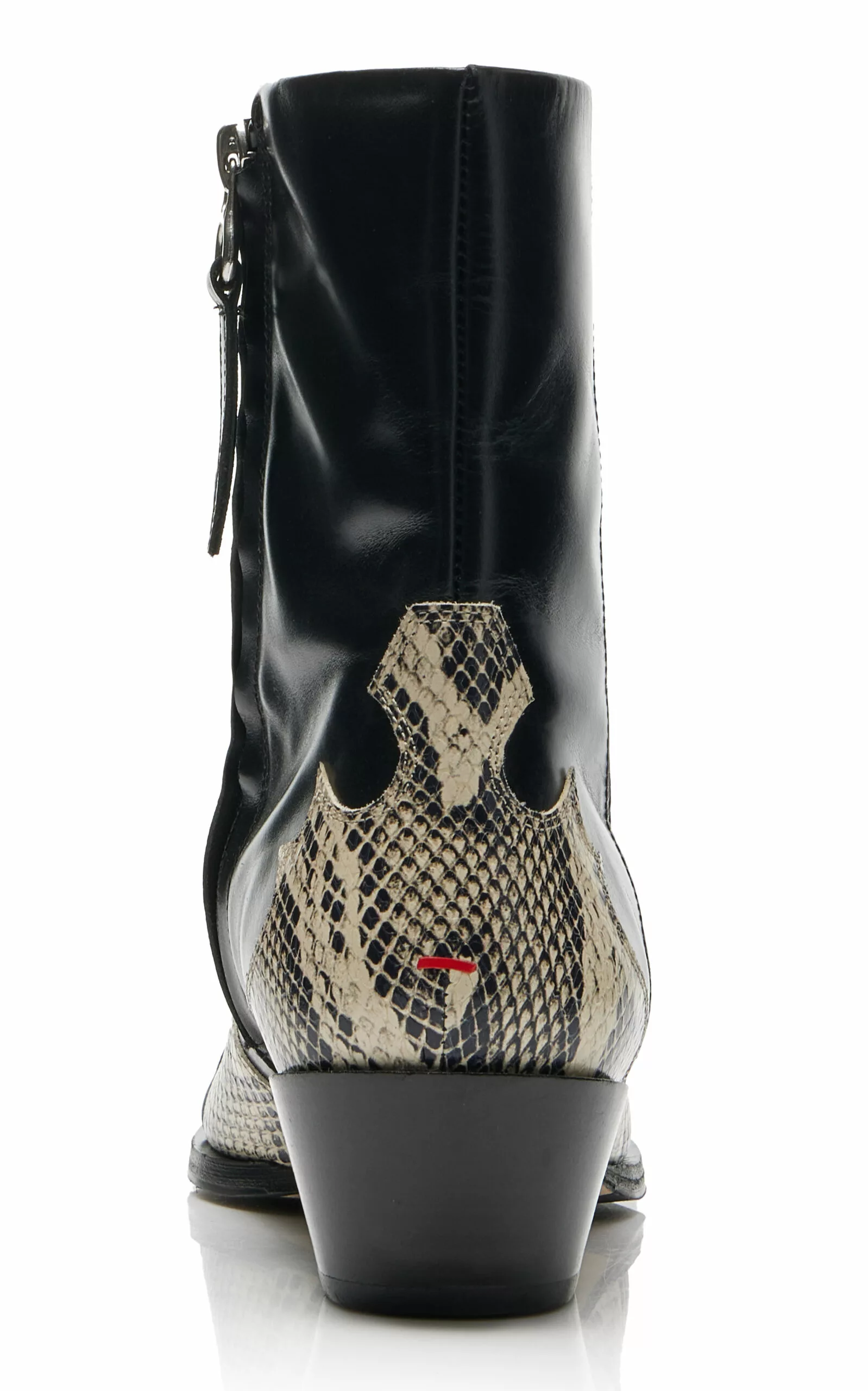 The ‘Hester’ boots are made from smooth leather detailed by western-inspired stitching and snake-printed panels. Style yours with relaxed denim and tailored trousers alike.