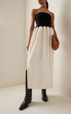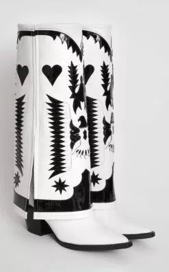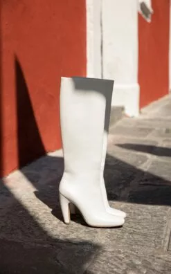 The ‘Bronco’ boots have an equestrian-style silhouette made from calfskin leather with a wide shaft and squared-off point toes. Wear with flowing midi dressed and tucked-in denim.