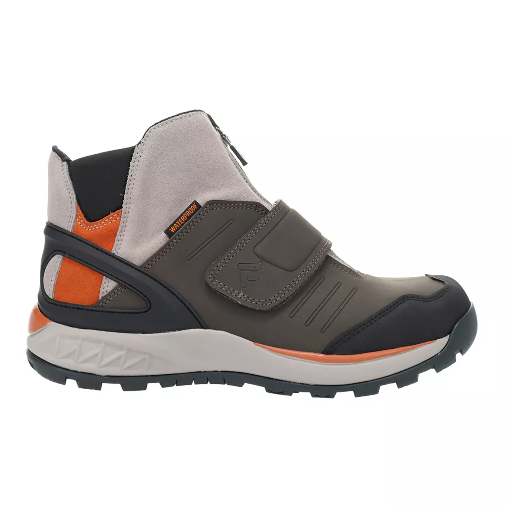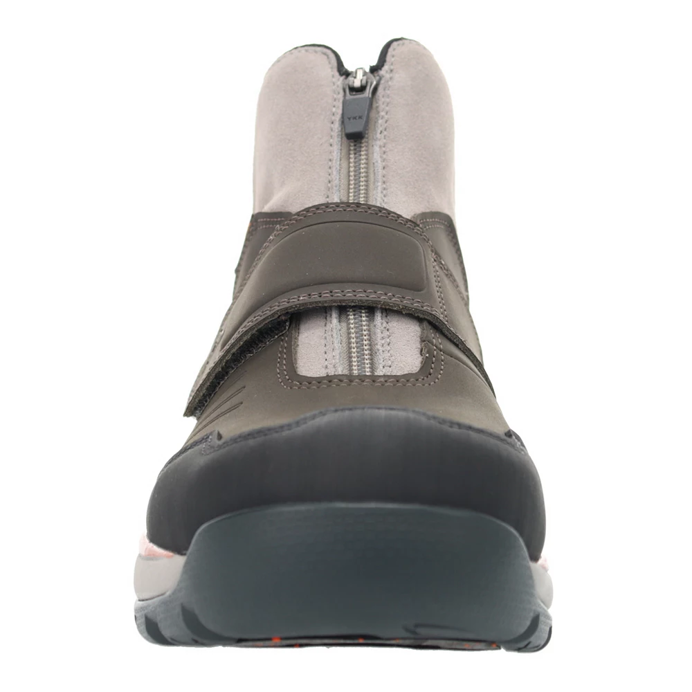 - Suede and nubuck upper with gusseted zip closure and adjustable strap for a secure fit in rugged terrain