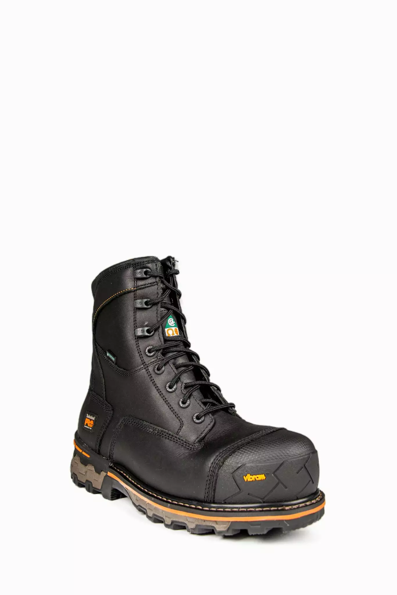 Timberland PRO® Boondock men’s lace-up waterproof work boots take on any job site with composite safety toes, anti-fatigue footbeds and 200 grams of Thermolite™ insulation to keep you warm and dry.