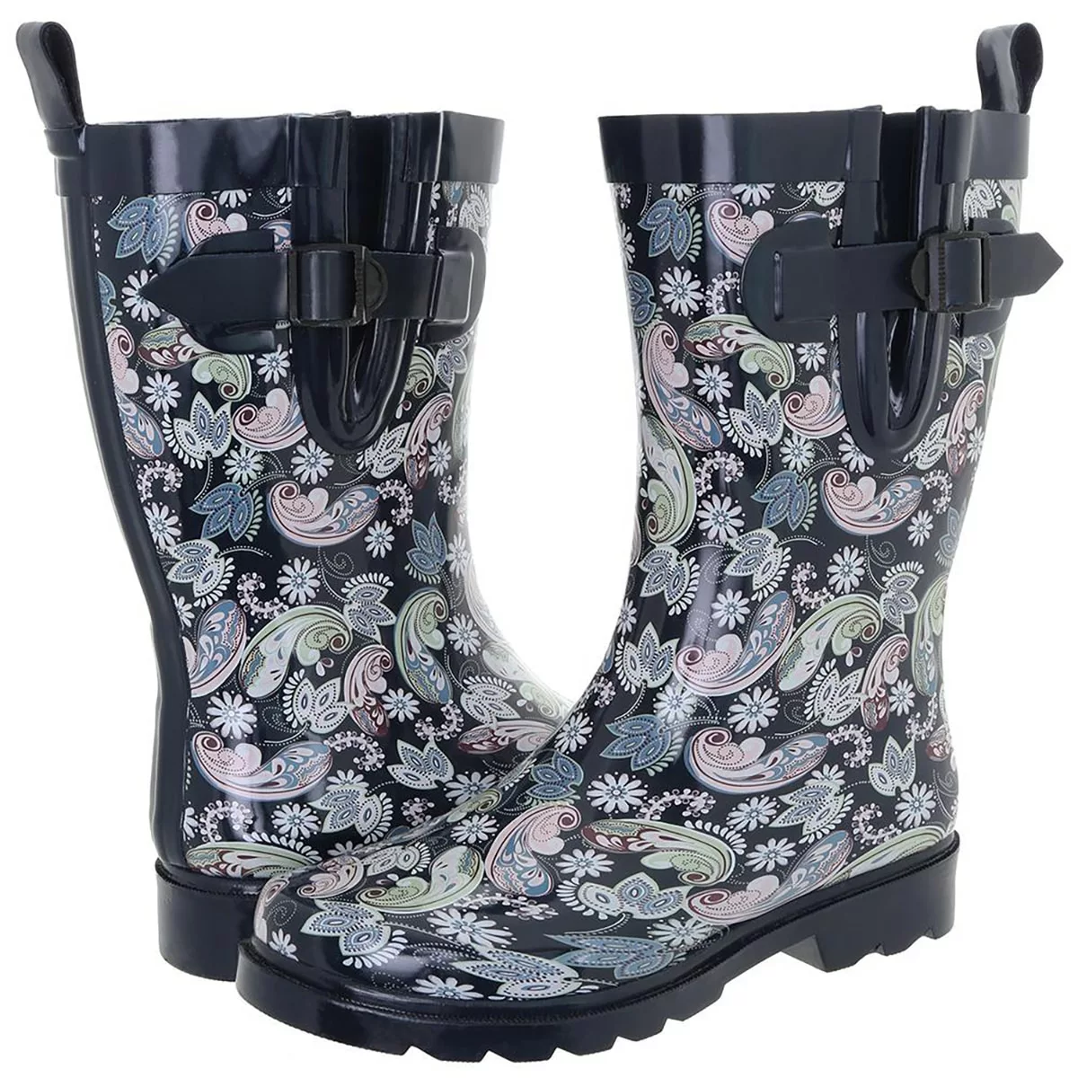 Womens Capelli New York Mid Ornate Paisley Ankle Rain Boots